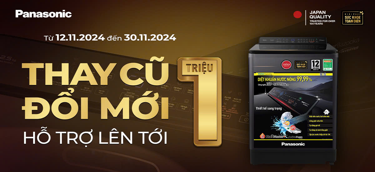 Đồng hành cùng Panasonic để tri ân khách hàng, Điện máy Gia Thành gửi đến khách hàng chương trình "Thay cũ đổi mới, trợ giá lên đến 50%". Khi khách hàng mua sắm bất kỳ sản phẩm nào như: tivi, tủ lạnh, máy giặt, máy sấy quần áo, máy lạnh, máy lọc nước, lọc không khí, lò vi ba, nồi cơm, quạt giải nhiệt, bếp các loại, v.v... sẽ được trợ giá lên đến 50%.